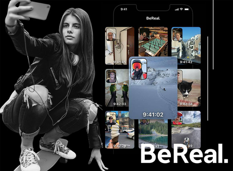 Con Be Real, nunca sabes cuándo ni cómo. La app te anuncia en cualquier momento del día que es momento de ser real, es ahí cuando te da la oportunidad de postear lo que estés haciendo en el momento, aperturando las 2 cámaras de tu celular.